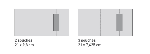 Le plus simple est de télécharger le fichier d'aide à l'utilisation des gabarits ci-dessus. C'est un fichier PDF que vous pouvez importer dans Photoshop, Illustrator, InDesign ou tout autre logiciel de mise en page.