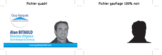 - Un fichier noir pour le gaufrage, de préférence vectoriel ou bitmap de 600 dpi. Ce fichier définit le relief du gaufrage.