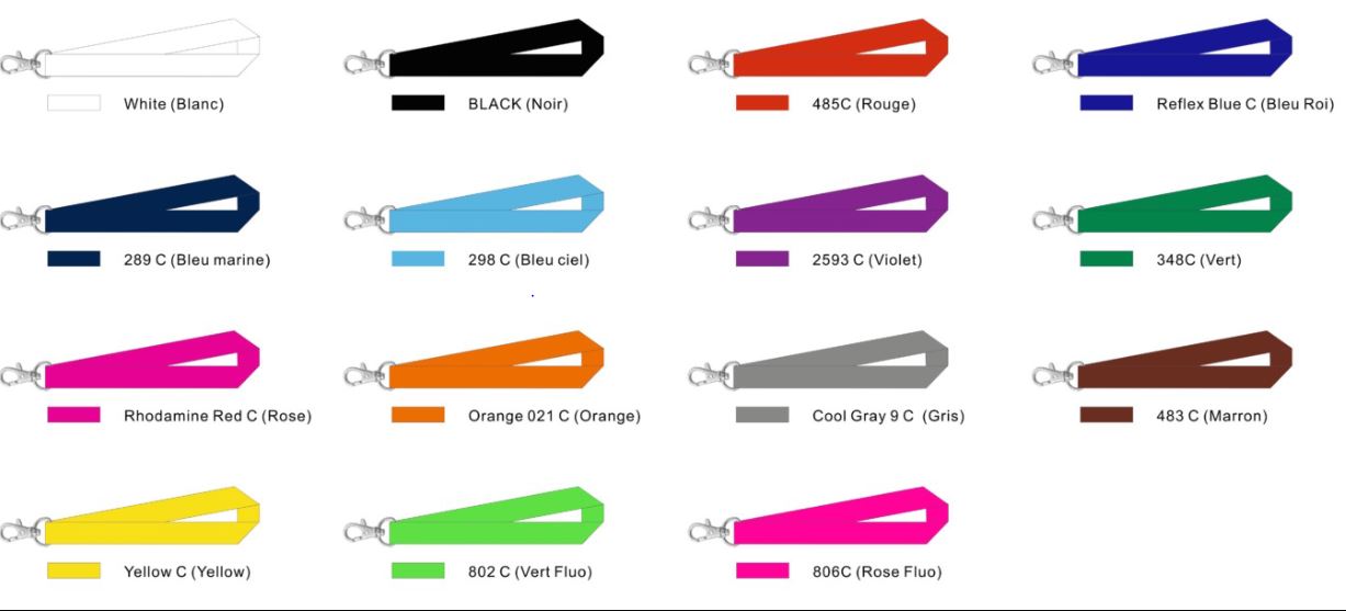 Couleur du tour de cou : toutes couleurs possibles même les couleurs Pantone (couleur Pantone spéciale : fluo...sur devis)